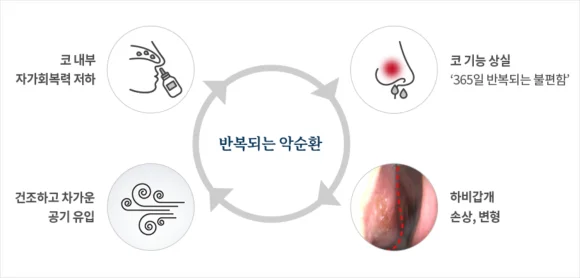 그리고 지금도 망가진 콧 속 하비갑개의 기능을 건강하게 회복시키는 치료에 중점을 두고 있답니다.
