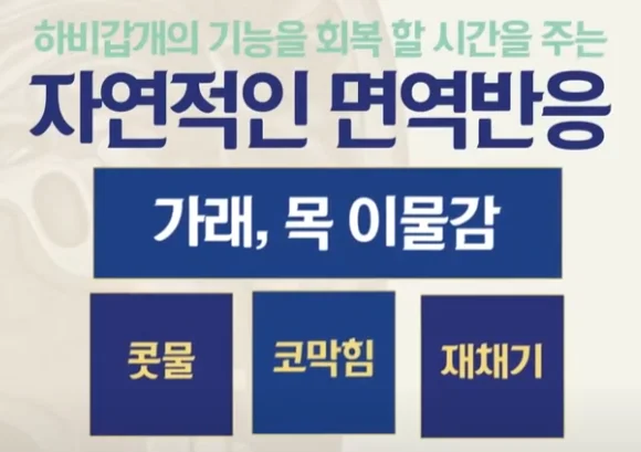촉촉한 하비갑개가 콧물을 정상적으로 배출함으로써, 콧물을 덜 끈적거리게 만드는 것이지요.
