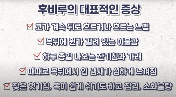 후비루의 대표적인 증상으로는