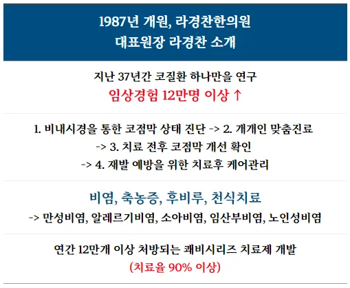 그렇기에 라경찬한의원은 1987년부터 지금까지 코 점막을 재생시키는 것 하나에만 집중해 왔습니다.