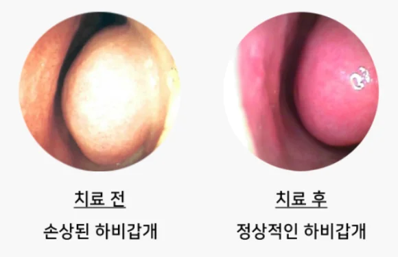 비내시경을 통해 하비갑개의 상태를 보아야 하는데요.