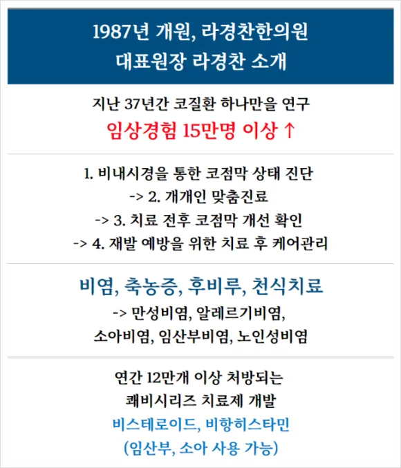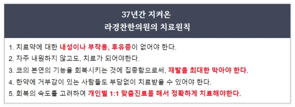 일시적인 증상완화보다는 비강점막을 건강하게 만드는 근본적인 치료를 고려하시기 바랍니다.