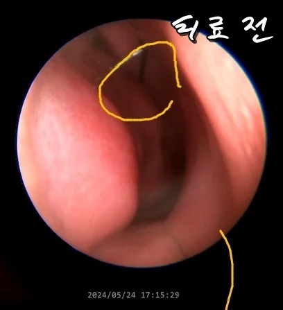 내시경으로 점막을 확인해보니 역시나 코 점막의 상태가 많이 좋아졌습니다.