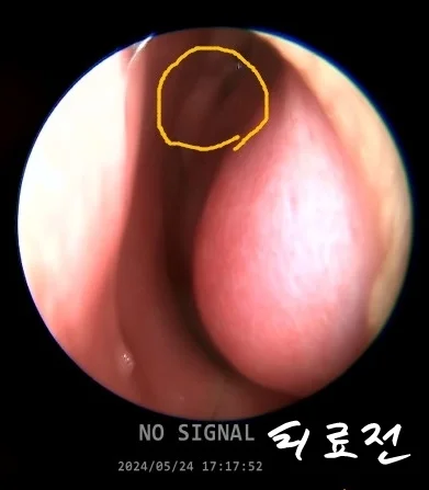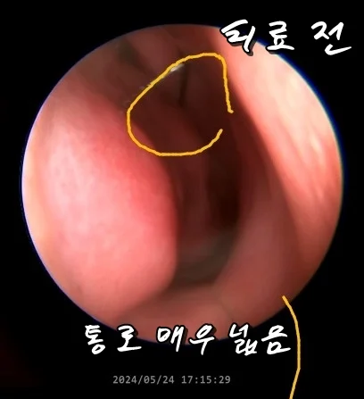 점막이 작아지다 보니 비강 벽과 코 점막 사이 통로도 아주 넓어져 있는 상태입니다.
