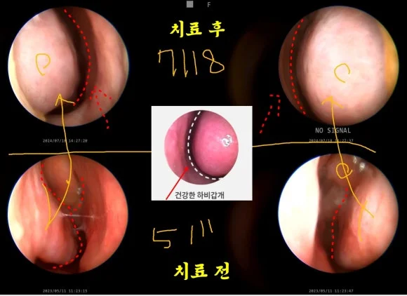 전후 코 점막의 모습을 비교해보면 변화를 더 쉽게 체감할 수 있지요.