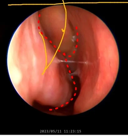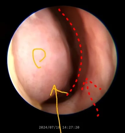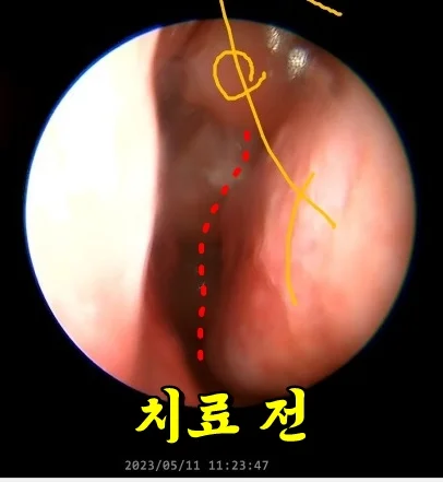 건강한 코 점막은 붉고 통통하며 촉촉해야 합니다. 그러나 이 환자분의 코 점막은 그렇지 못했습니다.