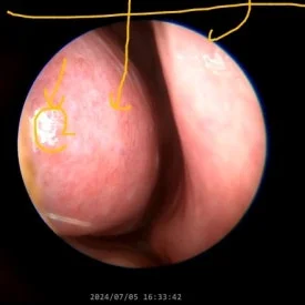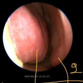 2024년 6월 20일, 처음 내원하셨을 때 내시경 검사를 통해 코 내부를 살펴보았습니다.