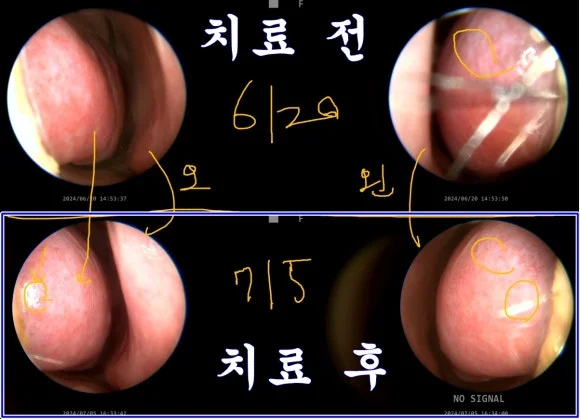 내시경으로 확인해보니 눈에 띄는 변화가 있었습니다.