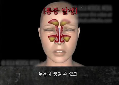 그리고 콧물이 내려가지 않고 계속 부비동에 차게 되면 안면통이나 두통과 같은 증상이 같이 발생하게 되는 것이지요.