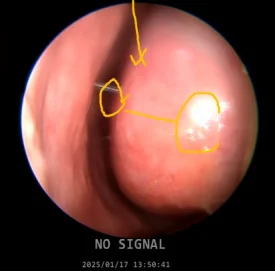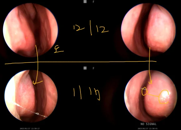 코 내시경으로 살펴보니 양쪽 모두 점막이 심하게 건조해져 있었습니다.