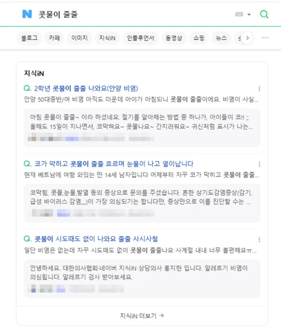 콧물이 흘러 불편함을 느끼셨다면