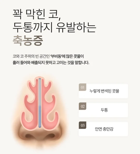 누런 콧물이 흘러나오게 되는 것입니다.
